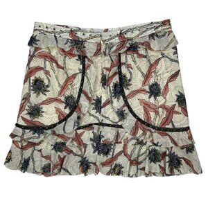 Isabel Marant Ugi Ruffle Trim Skirt 36 US/S Ecru Floral Mini Western Feminine
