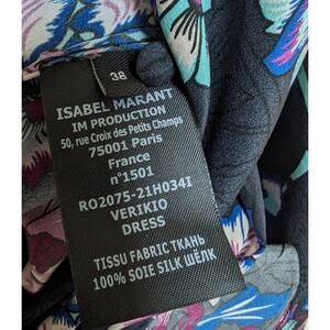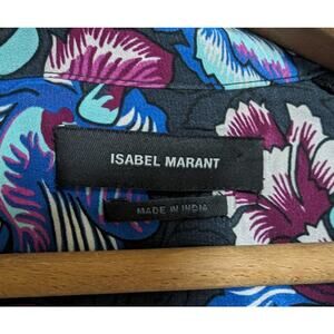 Isabel Marant Verikio Silk Floral Long Sleeve Ruffled Mini Dress Blue Purple 38