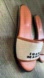 Canvas, brand logo, embroidered detailing, two-tone, leather lining, round toeline, flat, leather sole, contains non-textile parts of animal origin, slide sandals.