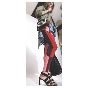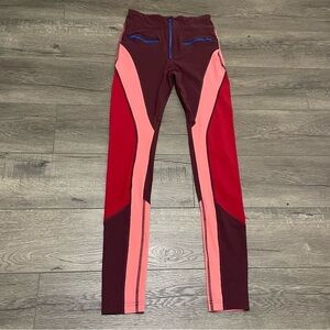 Isabel Marant Women's Tilda Zipped Leggings Burgundy Pink Red Colorblock Sz M In excellent condition Waist 24" Rise 9" Inseam 29"