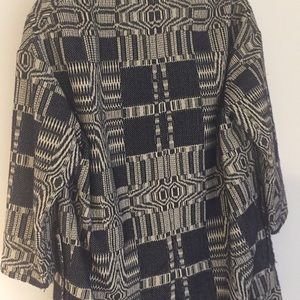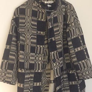 Blue/white pea coat style. Length 32inches. Sleeve length 24 inches. Size 36 EU