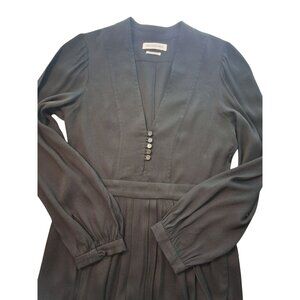 Isabel Marant Étoile Black Long Sleeve Midi Crepe Dress Button V-Neck 36 (US 4)