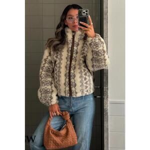 Isabel Marant Étoile Marie Teddy Half Zip Sweater Women’s Size 34 Ecru Brown