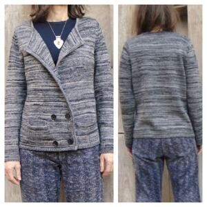 Isabel Marant Étoile Marled Black Gray Merino Wool Structured Cardigan Sweater