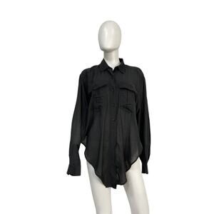 Isabel Marant �toile 'Nath' Black Cotton Cotton Utility Shirt Size 36: utility chest patch pockets and a self-tie hem, point collar, long sleeves, button cuffs, button-front closure.