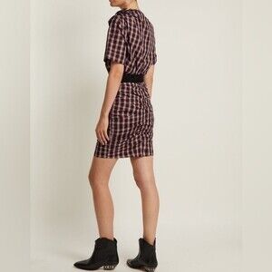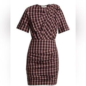 Isabel Marant Étoile Oria Red Black Tartan Ruched Cotton Dress 8 NWT