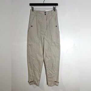 Tapered Pants cotton-canvas pleated multipockets belt Loops high-rise Cut snap-fastening Cuffs snap And Concealed Zip Fastening At Front mid-weight, Non-stretchy Fabric machine Wash Or Dry Clean imported.
