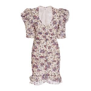Isabel Marant Étoile Sireny Puff-Sleeve Ruched Floral Cotton Mini Dress Size 4