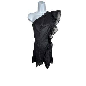 Isabel Marant Étoile Teller Dress Black Linen One Shoulder Ruffle Size 34 US 2