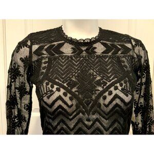 Isabel Marant x H&M Black Sheer Lace W/ Geometric Pattern Shirt , Size 4