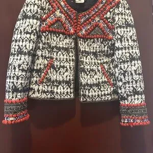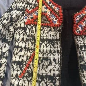 Beaded, embroidered, mirrored, tie-dyed jacket. In excellent condition. Hook and eye closure in front. Heavy.