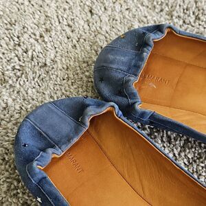 These Isabel Marant flats feature a minimalist design in a rich blue hue, perfect for versatile, everyday wear. Crafted with a rounded toe and a flat sole, they offer comfort and style without any embellishments. The interior lining in a contrasting tan adds a subtle touch of elegance.