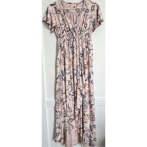 Isabel Materniry • Light Pink Blue Paisley Ruffle Faux Wear Maxi Dress