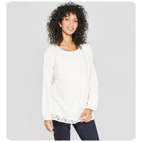 Isabel Maternity Babydoll Ecru Lace Long Sleeve Blouse Women's Sz XL
