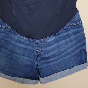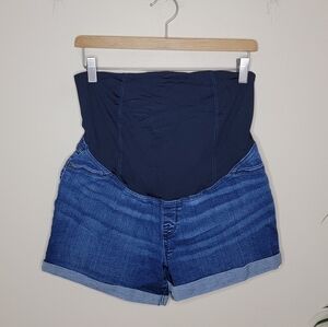 Isabel Maternity | Belly Panel Denim Jean Cuffed Shorts Size 8