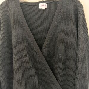 Isabel Maternity Black Ribbed Wrap front Sweater Cozy Stylish Baby Bump Sz. XL