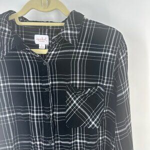 Isabel Maternity Black White Plaid Button-Up Long Sleeve Top Women’s Large