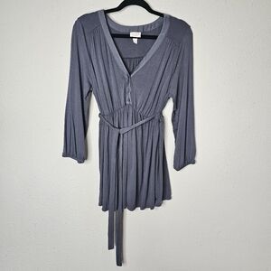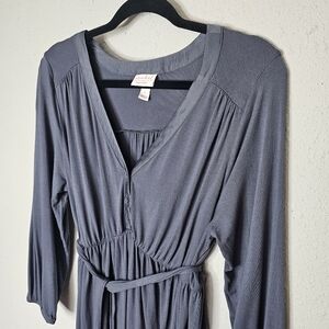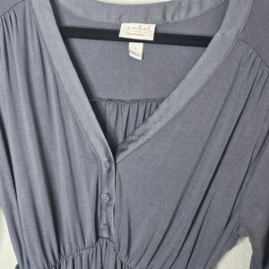 Isabel Maternity Blue V Neck Shirt Elastic Waist with Tie Peasant Sleeve Size L