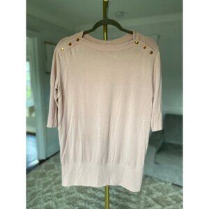 Soft blush pink maternity top with luxe gold-tone snaps at both shoulders for a polished, versatile look. Made with a smooth modal-blend fabric, this top is perfect for easy nursing access or cozy lounging.