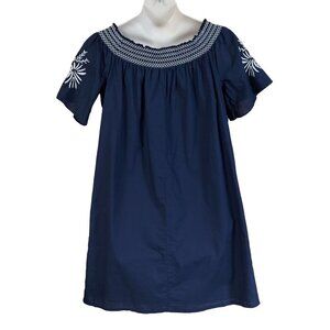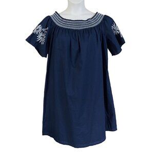 Isabel Maternity Boho Navy Blue Off-the-Shoulder Embroidered Dress