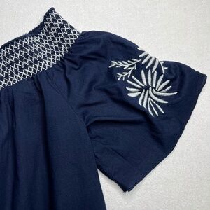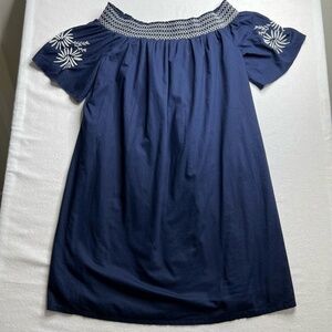 Isabel Maternity Comfy Womens Off-Shoulder Embroidered Navy Dress Size Medium