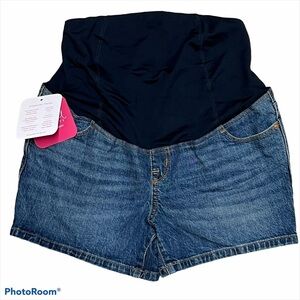 Light wash soft denim meets a maternity jean short for cool, easy style. Power stretch denim sculpts and shapes while adjusting to your changing body.