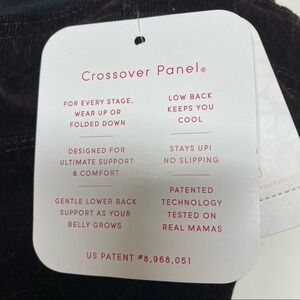 The Crossover Panel provides gentle back support as your belly grows, and the low back design keeps you cool. This unique panel is designed to fit throughout and after pregnancy with no slipping or digging in at the belly. Wear up over the belly or folded down.