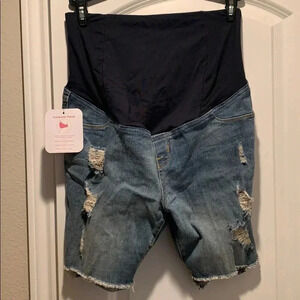 Isabel Maternity Distressed Bermuda Denim Shorts NWT