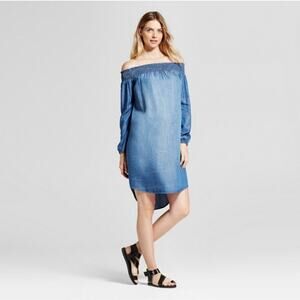 Isabel Maternity by Ingrid and Isabel Denim Chambray Off the Shoulder Dress X-Small