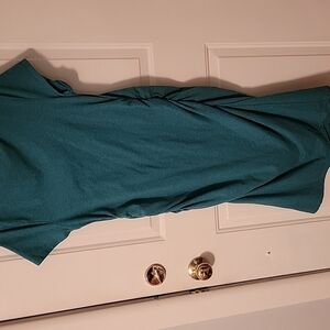 Striking Knit Dress with Side ruching to accommodate expanding tummy.