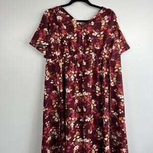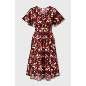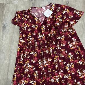 Isabel Maternity Floral Print Short Sleeve Woven Burgundy Dress - XS - NWT