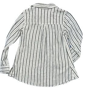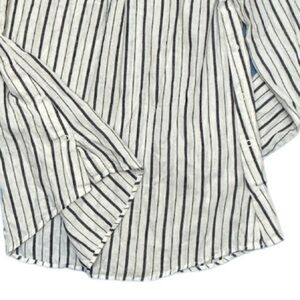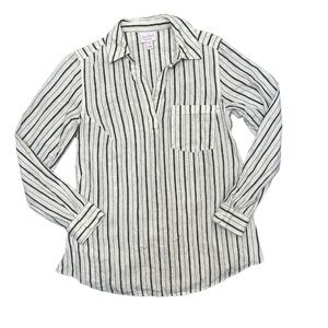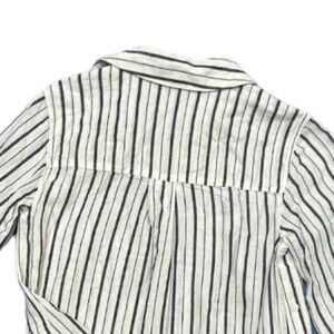 Isabel Maternity Linen Snap Sides, V-Neck Collared Striped Linen EUC Beachy