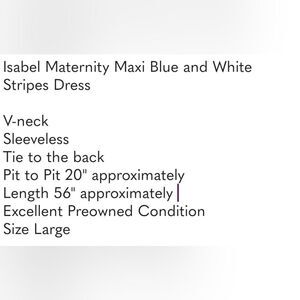 Isabel Maternity Maxi Blue and White Stripes Dress Size Large