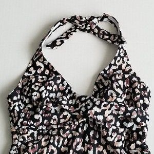 Isabel Maternity Medium One Piece Swim Suit Black Brown Halter Tie Built in Bra