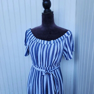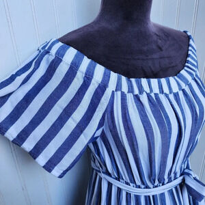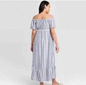 Isabel Maternity Off The Shoulder Striped Maxi Dress Womens Blue White Sz S