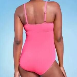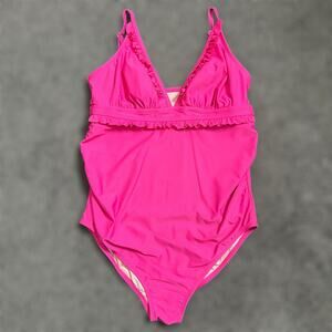 Isabel Maternity One Piece Swimsuit LARGE Pink Ruffle Plunge Padded Ruched Beach
