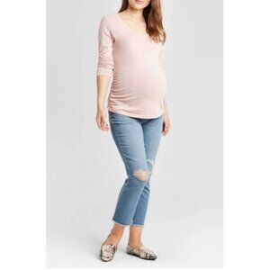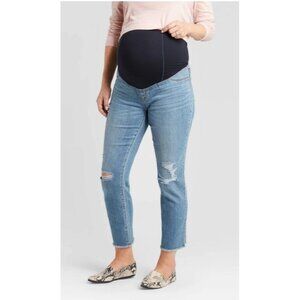 Isabel Maternity Over Belly Cropped Distressed Straight Maternity Jeans Blue 14