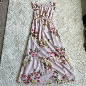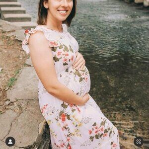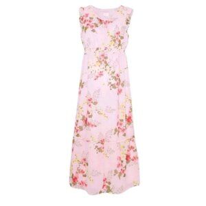 Isabel Maternity | Pink Floral Ruffle Cap Sleeve Maxi Dress | Size Extra Small