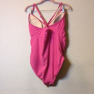 Isabel Maternity Pink Ruffled One-Piece Swimsuit Large