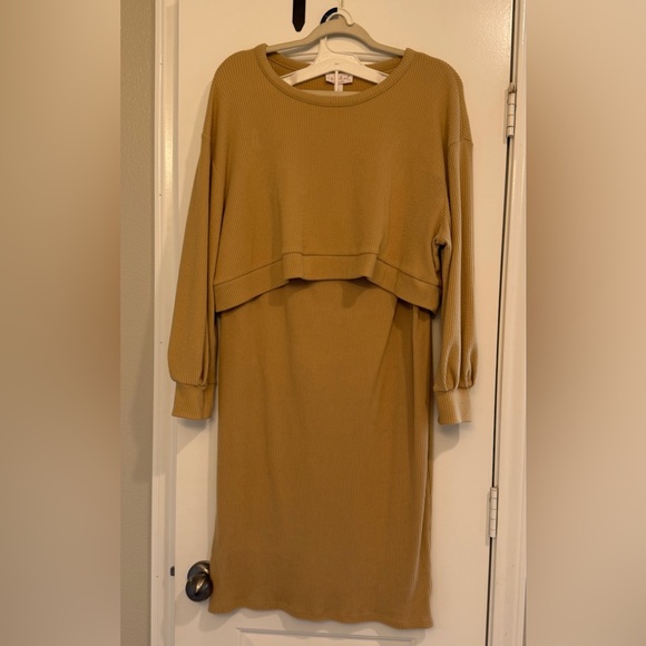 Soft ribbed knit sweater 2 piece set in a layered style. Crew neckline and long sleeves.
