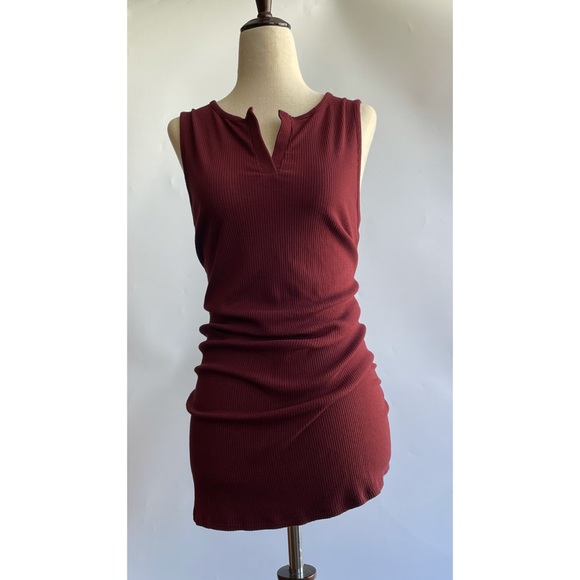 Isabel Maternity Ribbed Tank Ruched Red Medium