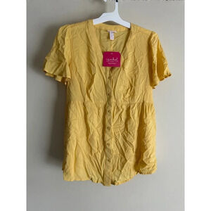 Isabel Maternity Short Sleeve V-Neck Button Front Top Yellow Sz M NWT