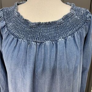 Soft Lightweight Chambray Maternity Dress wear On or Off the Shoulder. Pair with Sandals or Boots and your ready To go!