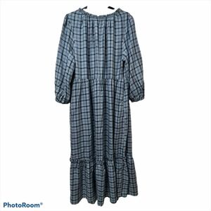 cuffed elastic sleeves and a tiered bottom in a pretty blue plaid rayon.