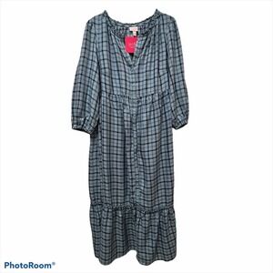 Isabel Maternity Sonnet Blue Plaid Dress NWT L