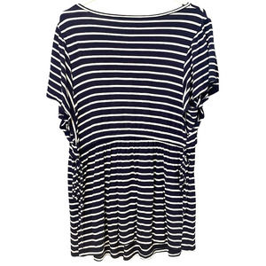 Isabel Maternity Striped Shirt Size L Navy Blue Short Flutter Sleeves V Neck