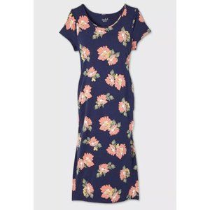 Isabel Maternity T-Shirt Dress, Cotton Blend, Navy Floral, Stretchy Size S, M