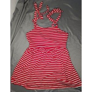 Elevate your maternity style with this chic spaghetti strap top from Isabel Maternity. The red and white striped pattern adds a touch of sophistication, while the spaghetti straps and accent details provide a feminine touch. This size M top is perfect for any expecting mother who wants to feel stylish and comfortable. Whether you're dressing up for a special occasion or dressing down for a casual day, this top will elevate any outfit.