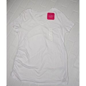 Isabel Maternity White V-Neck Side cinched Top Large