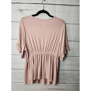Isabel Maternity Womens Casual Top Pink Short Sleeve Stretch Lace Knit Plus XXL